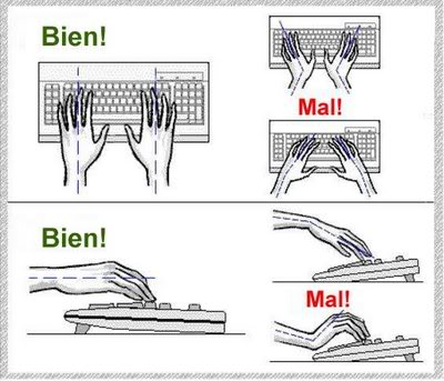 6.- No use el teclado demasiado inclinado para evitar le extensión sostenida de la muñeca y tengalas en forma paralela una de la otra.